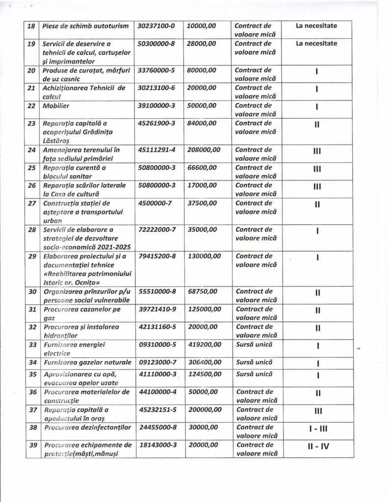 Primăria orașului Ocnița prezintă Planul achiziției publice pentru anul 2021, elaborat și aprobat de primarul Victor Artamaniuc: