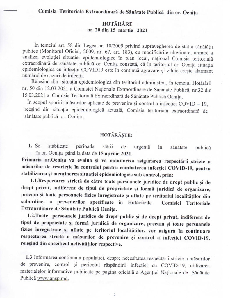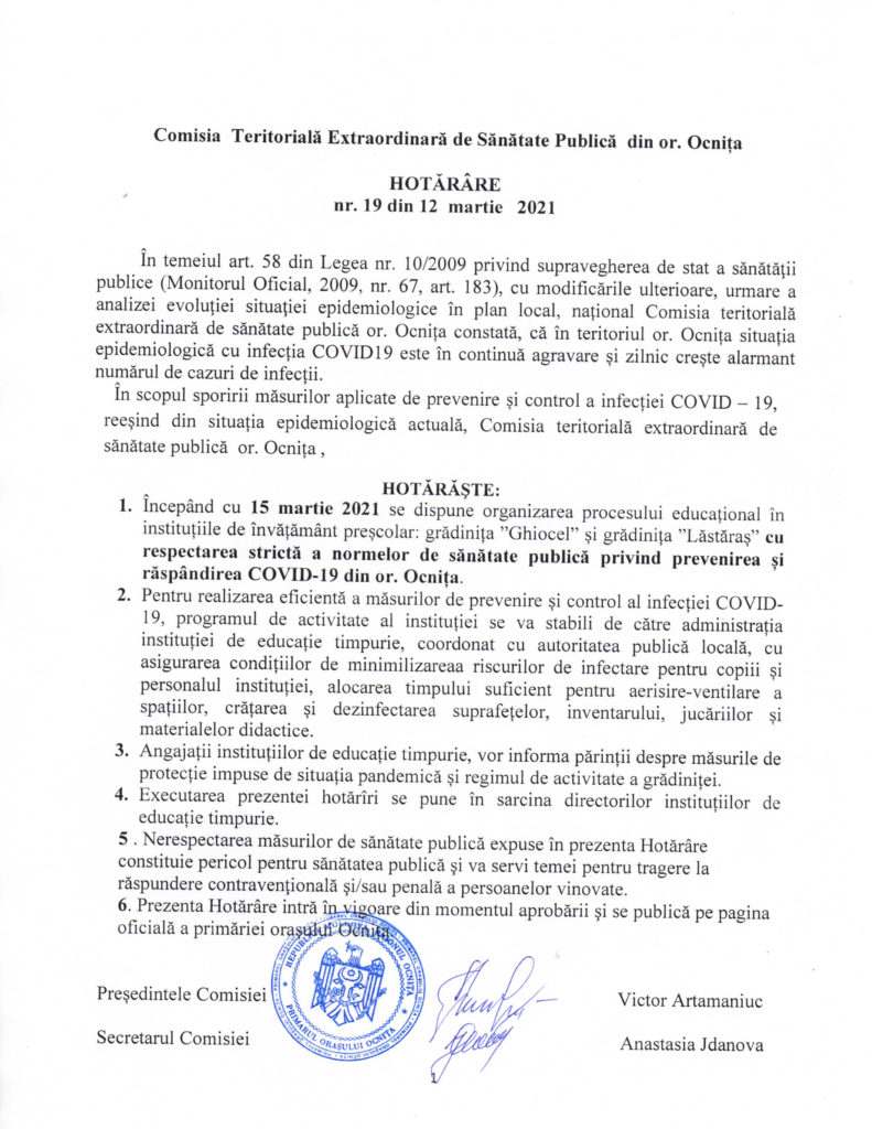 A finalizat întrunirea consilierilor cu aprobarea programului de activitate a consiliului or. Ocnița pe anul 2021.