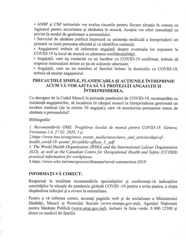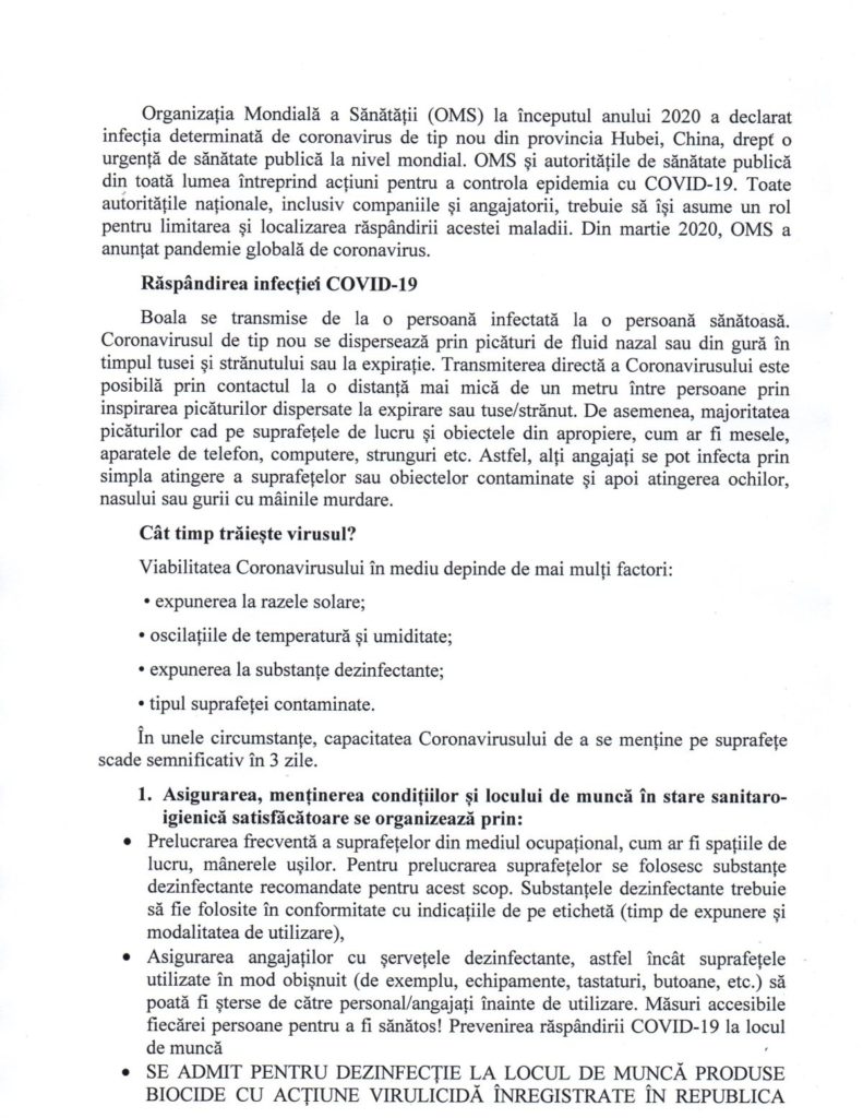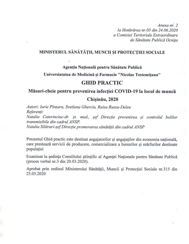 Stimați locuitori ai orașului Ocnița, vă informăm despre Măsurile-cheie pentru prevenirea infecției COVID-19 la locul de muncă.
