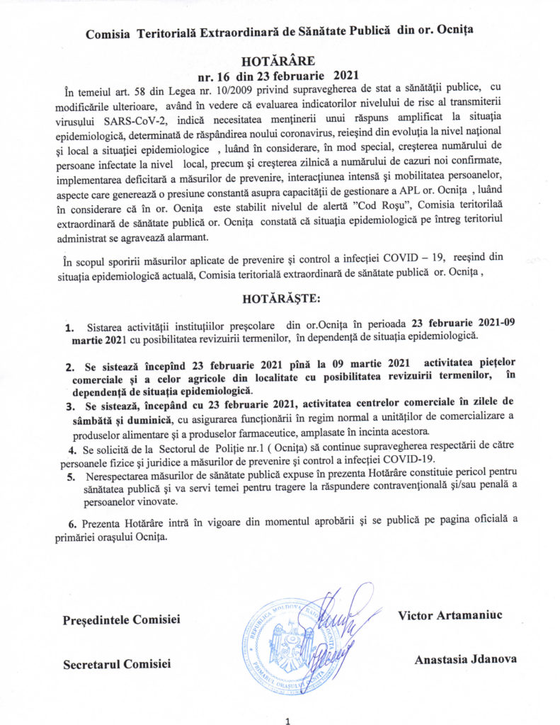 Primăria orașului Ocnița vă informează că, în urma gestionării efective a banilor publici, la 01.01.2021 s-a format un sold liber de mijloace financiare (1435,5 mii lei), care urmează să fie redistribuite în folosul comunității (reparații curente, capitale ale unor segmente de drumuri, implementarea unor proiecte ș.a.), vezi Proiectul.