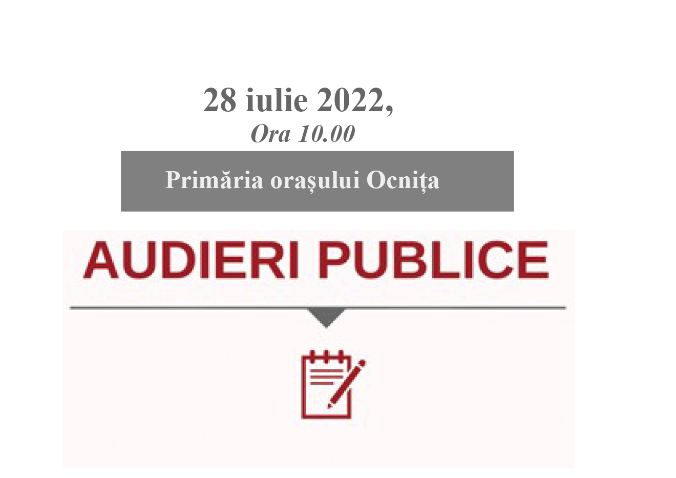 Sunt invitați toți doritorii din orașul Ocnița, joi, pe data de 28 iulie, ora 10:00, în sala de ședințe a Primăriei.